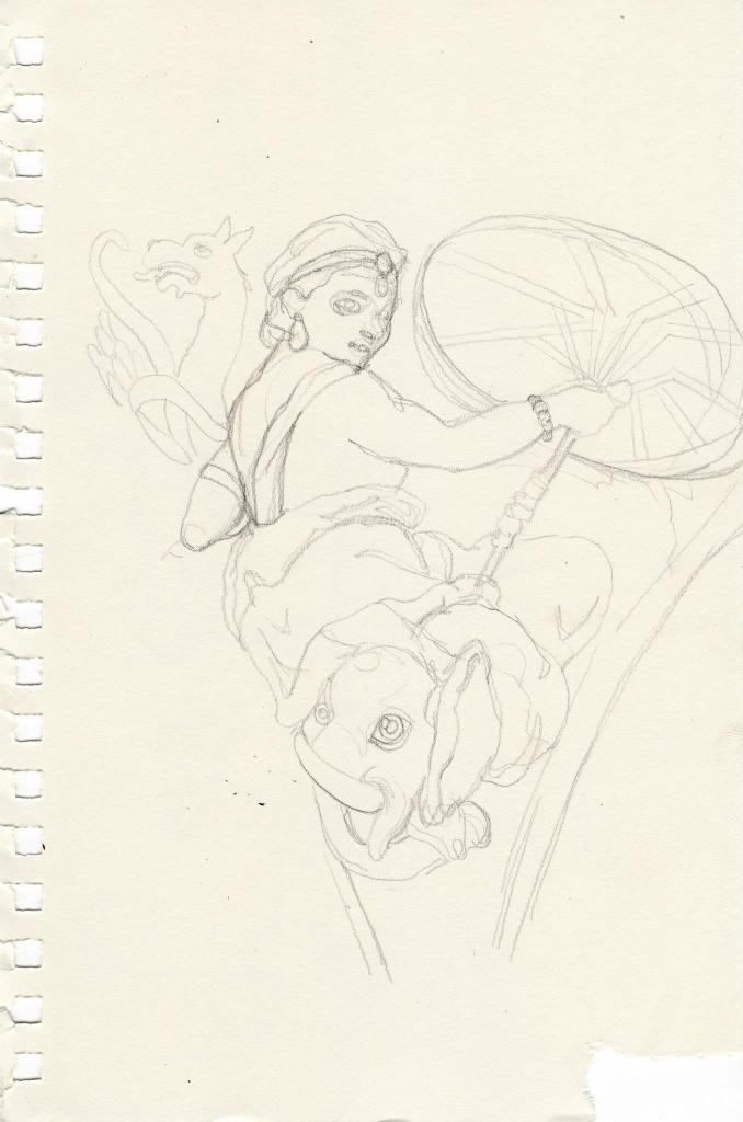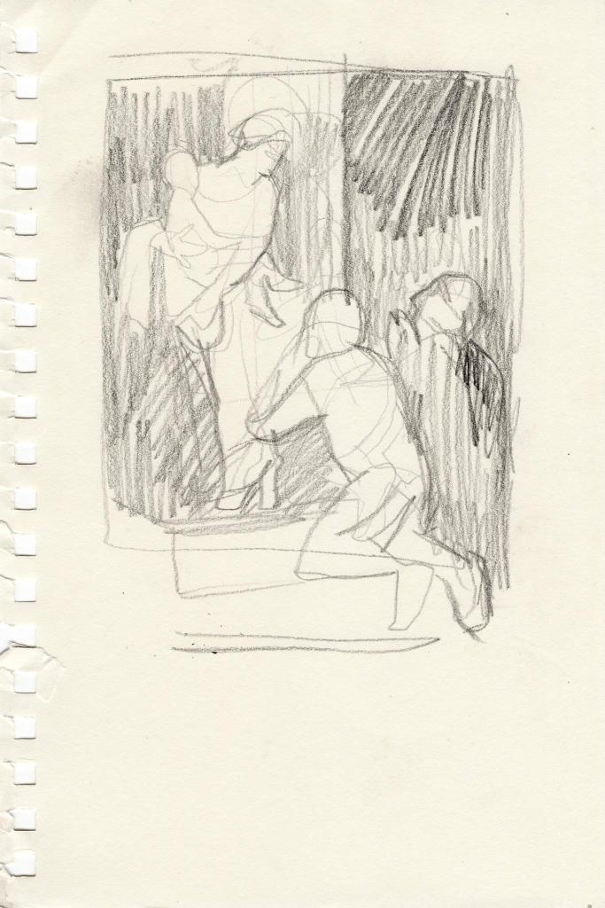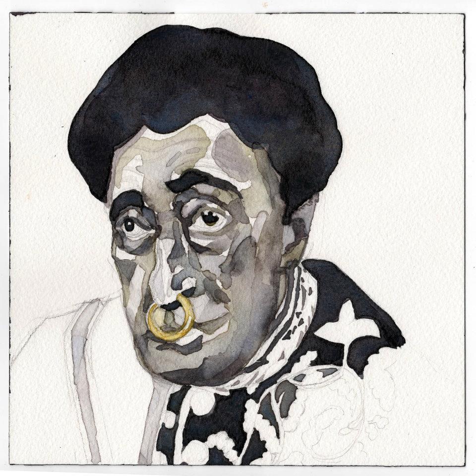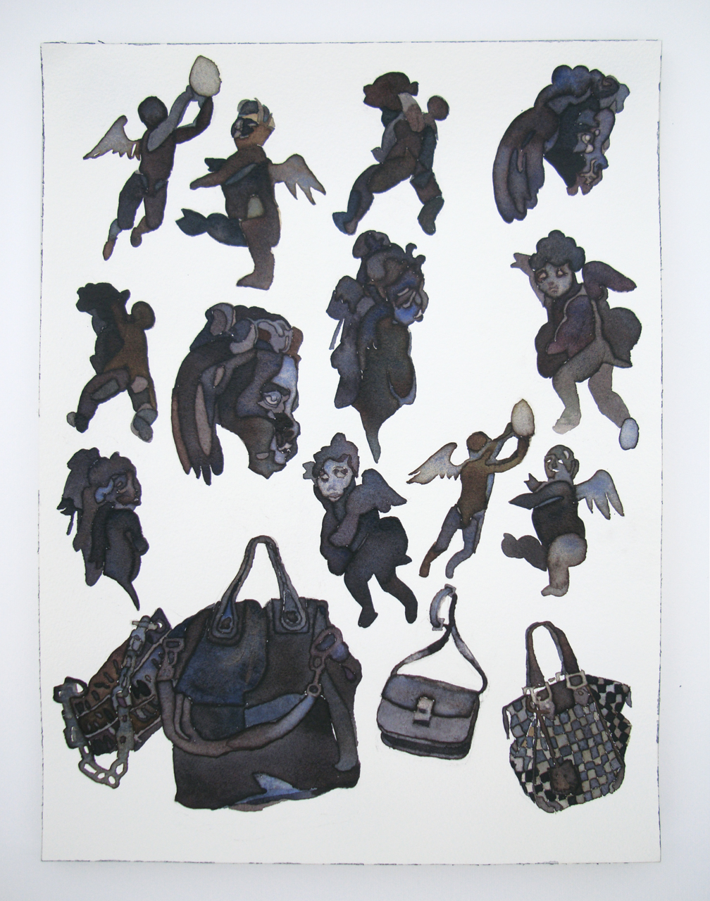 Vatican City, (my representative work) considers variations on a theme. Each row marks an encounter with different forms of the same symbol. The first row are maure I found and sketched at the Vatican museum. The second row are Sos Bator Moros, or Four Moors of the Sardinian flag. The third row are transformations of the Moor of Freising, heraldic charge of the current pope. The final row are Senegalese bag sellers whose likenesses I have captured. I was thinking of old botanical lithographs and Phrenology.