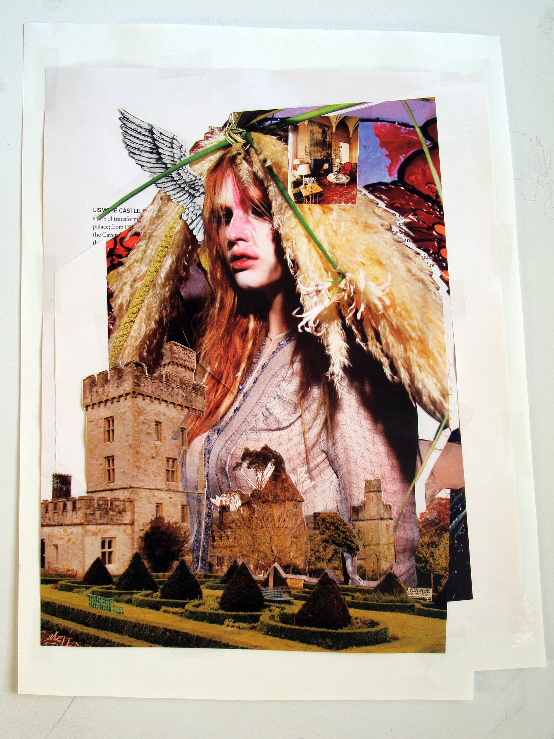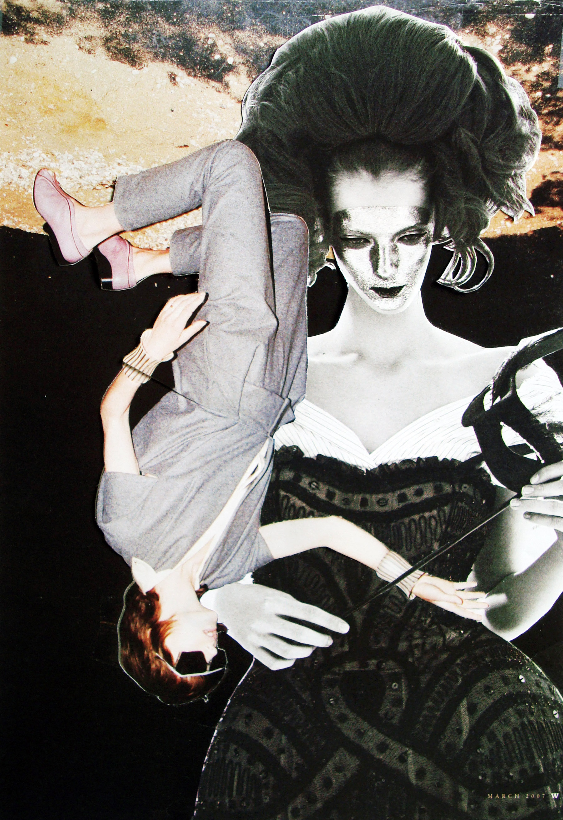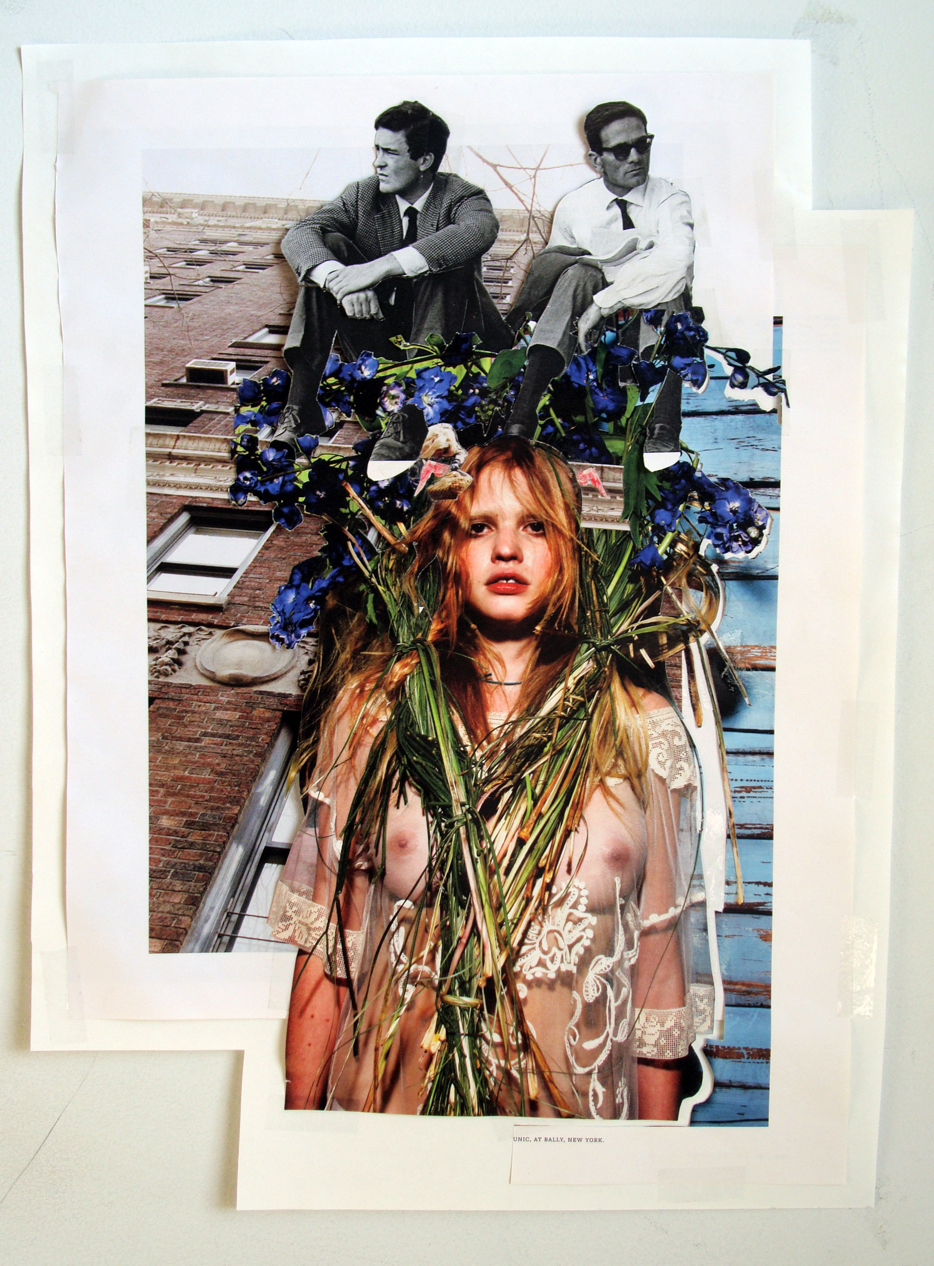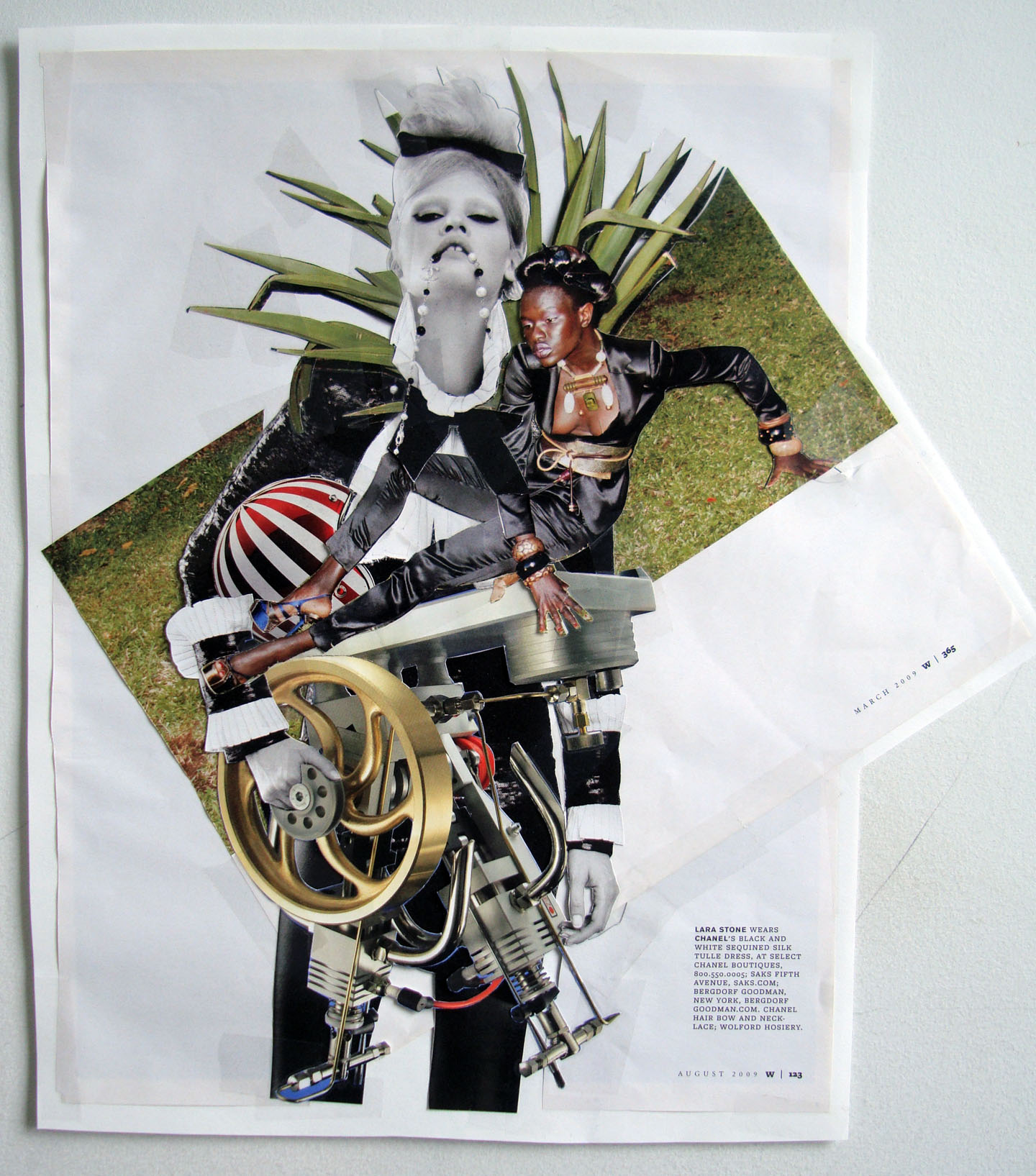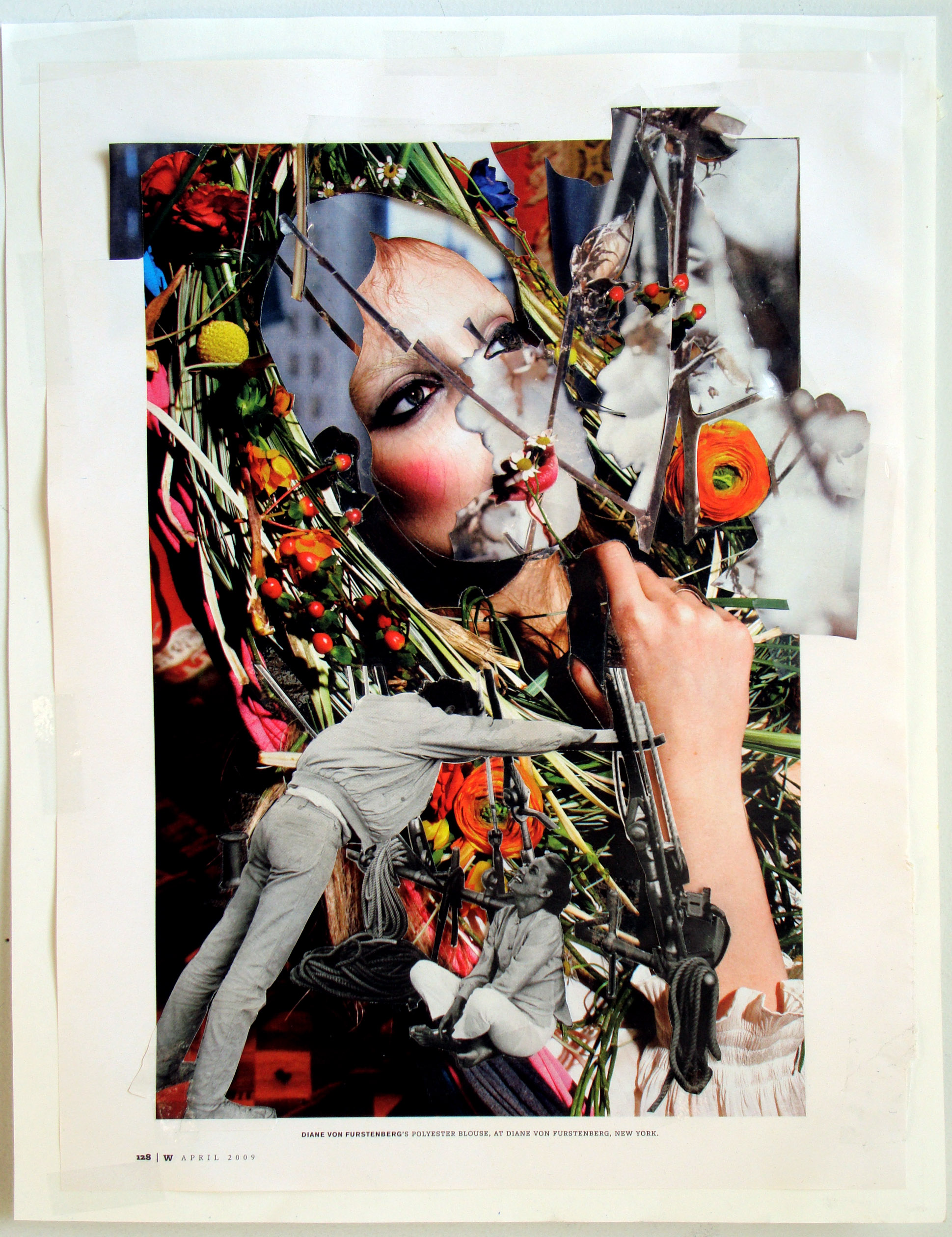 collage is useful in talk about the now. considering the ubiquity of advertisement, considering the solicitous affect of glossy pages of saturated ink, on targeted audiences; considering the topical and transient, fading nature of fashionable new ways of telling old stories; images wrangled together on one of my pages are have no choice but to please the eye. they are prefabricated. engineered to be not only accessible to broad audiences, but seductive. the perfect vehicle for reflective critique.