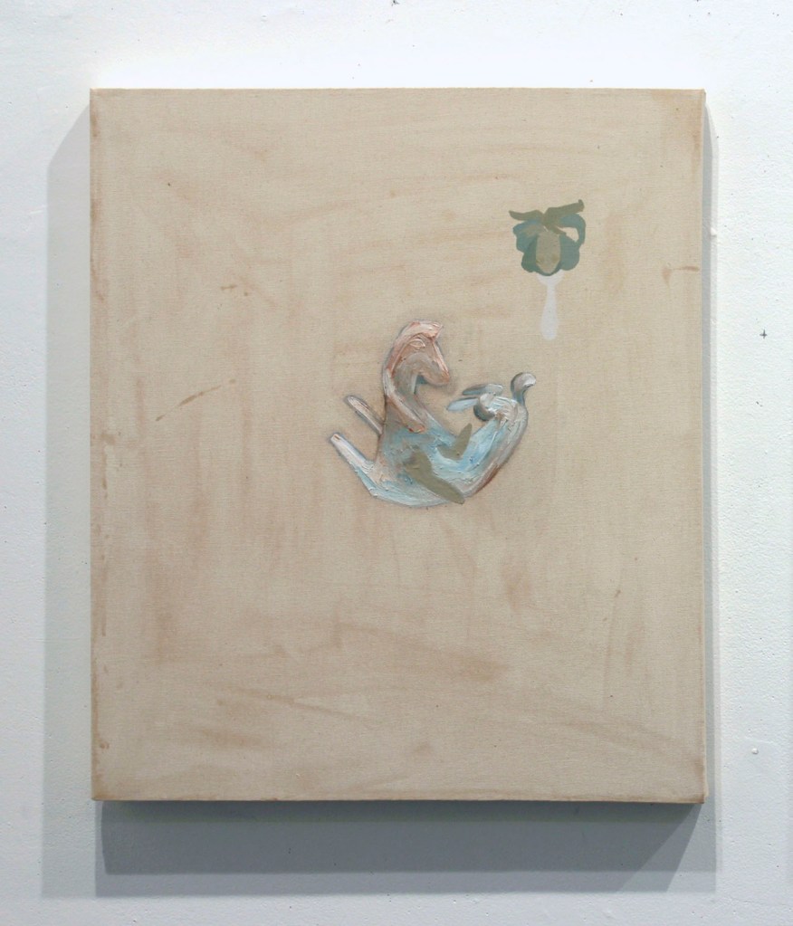 But in that case in particular, unlike the other painting – you’re actually conjuring an object, right? The way you’re using paint. The way you almost conjure the Smurf, to some degree – it’s coming into this sort of physical bit.